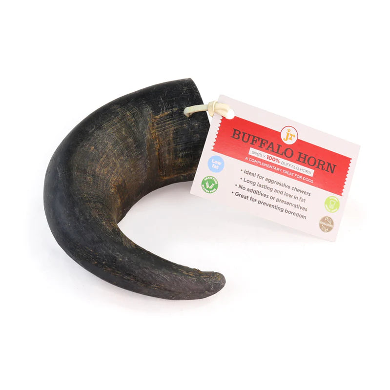 JR Pet Products Natural Buffalo Horn is 100% Buffalo Horn. These durable chews are Long lasting and wear down very slowly. Made of Keratin, these are incredibly Low in Fat and are ideal for more Aggressive chewers, supporting good Teeth and Gum Health as well as strengthening jaw muscles. These Horns are a great boredom buster and being Nature's Stuffables, there is a hollow section perfect for stuffing with our Pure Paté for a super Enriching Treat.