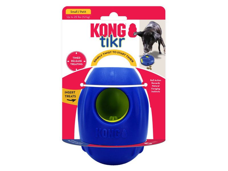 KONG Tikr delivers long-lasting mental stimulation with a timer activated treat dispenser that sparks intrigue with a varied release of treats. The auto-rotating holes control the pace of dispensing and can be set for up to 45-minutes. Once the timer is set, Tikr ticks and rolls time activated dispensing that continues to fuel engagement while rewarding positive natural foraging instincts. Vary the challenge by adding multiple sizes of treats. No batteries required.