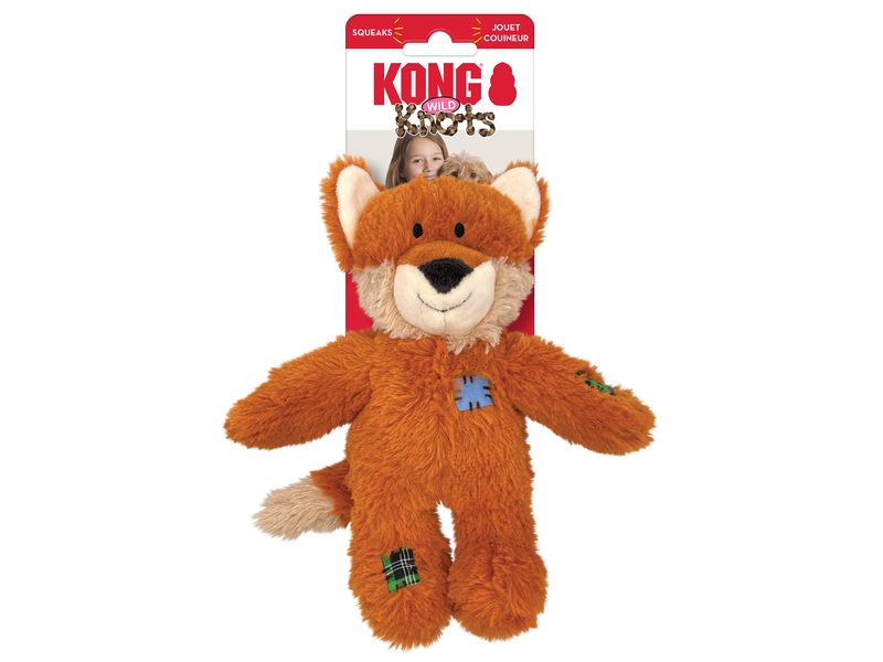 KONG Wild Knots Fox is soft and cuddly on the outside yet durable and strong on the inside thanks to a rope skeleton that satisfies dogs natural instincts. Squeaks and crinkles extend the forest animal frolics while minimal stuffing means less mess. Plush body is great for snuggling.