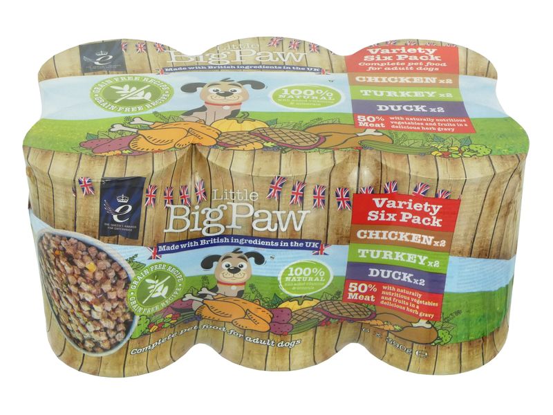 Pack of six Poultry variety pack. Contains 2x Chicken, 2x Turkey, 2x Duck. Absolutely no artificial preservatives, no colourants, no flavourings, no grain, no wheat, no soya and no dairy. Just great food packed with natural goodness!