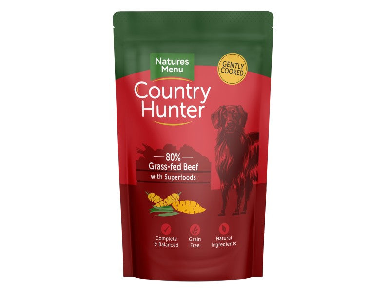 Our Country Hunter pouches for dogs are filled with top quality raw ingredients, sealed and then gently cooked to lock in goodness.