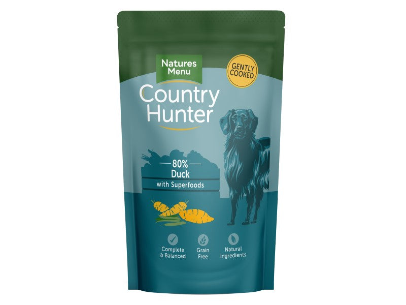 Our Country Hunter pouches for dogs are filled with top quality raw ingredients, sealed and then gently cooked to lock in goodness.
