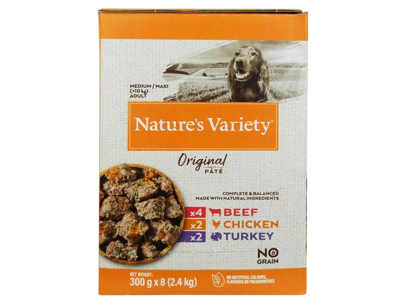 This selection pack of Nature's Variety Original Pâté contains 8 complete and balanced 300g pouches of high quality, nutritious wet dog food.