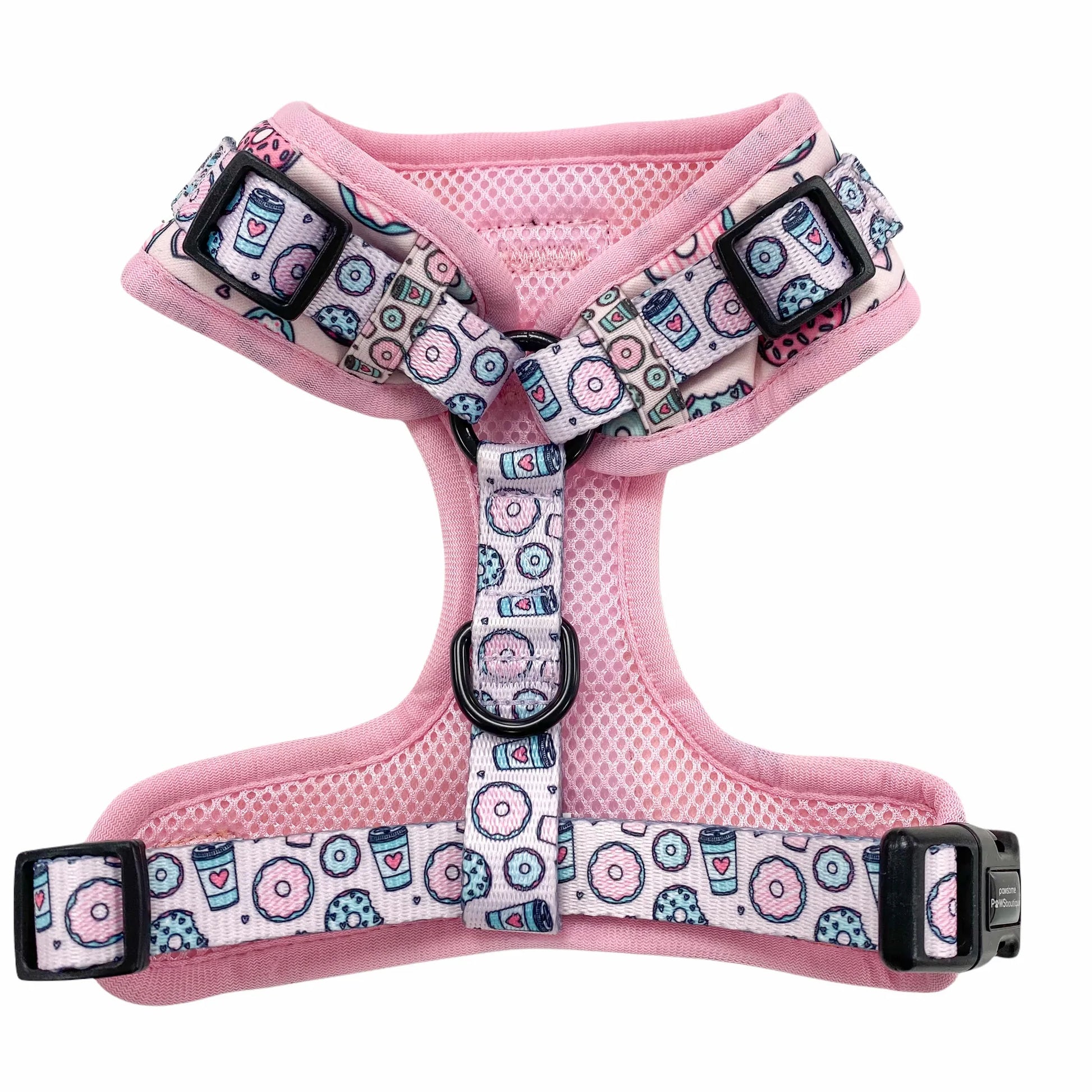 Meet Pawsome Paws Boutique's ‘Sprinkles’ D-Ring adjustable harness! A super cute quirky design paired with pastel pink lining. Centre front chest D-Ring. This feature is perfect for ID Tags and training purposes.